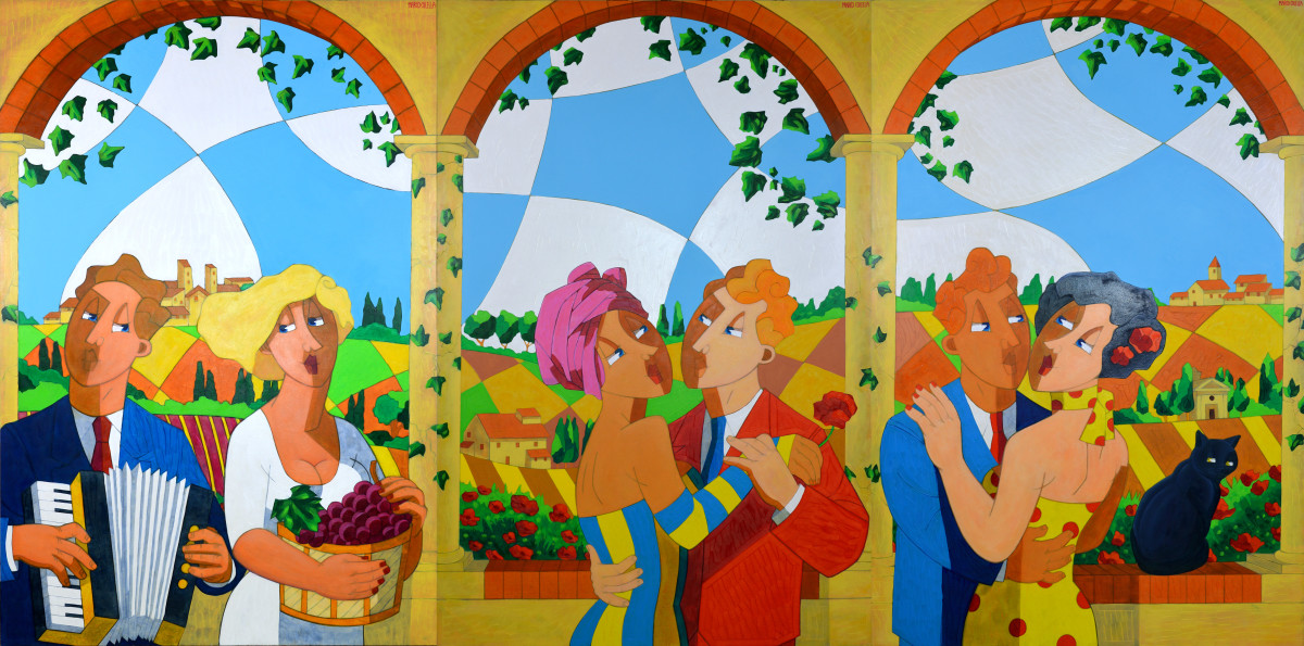 Trittico Costantini Trittico dipinto ad olio su pannelli di compensato marino di cm 103x153