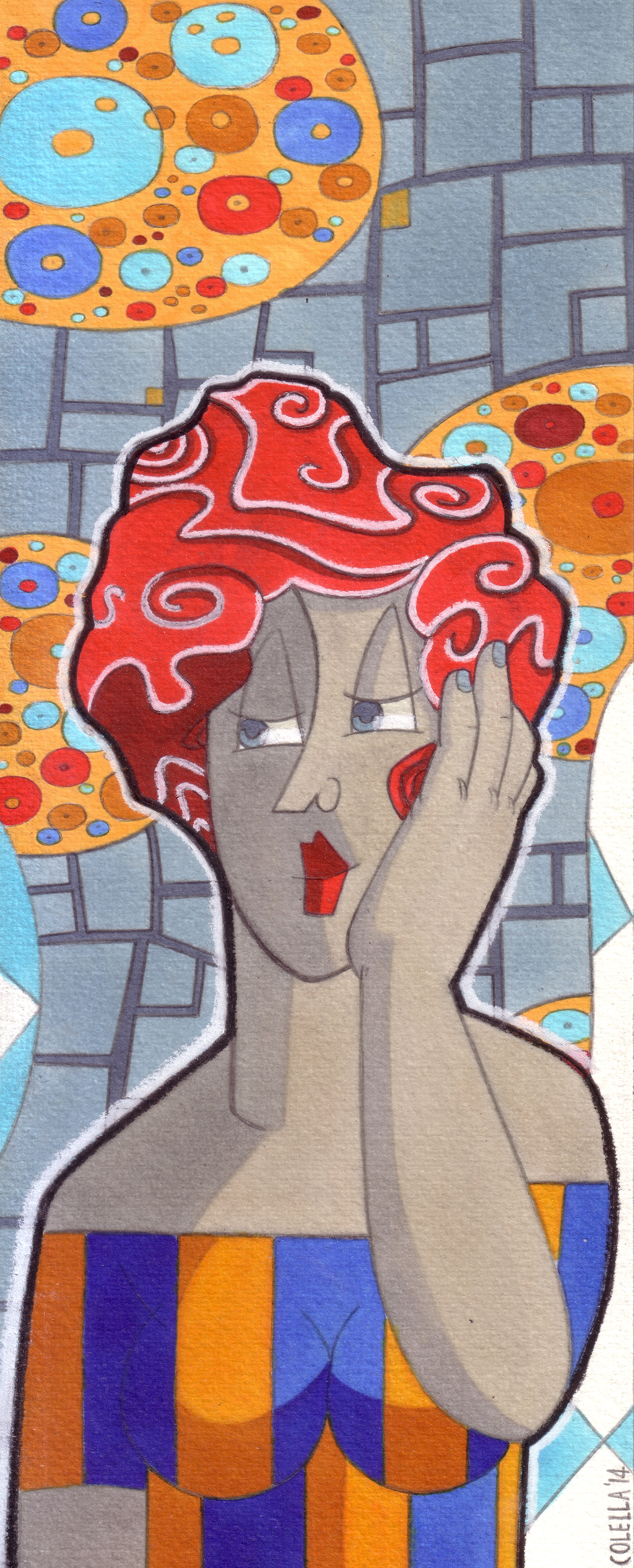 Today its path is also expanding the application of ceramic painting transferring of large dishes her alluring female figures. This new dialogue between form and surface makes wink from one of his “portraits” where the woman is holding a vase finely decorated with classic styles: Colella and in fact, in his experience ceramics, also plays the ancient grounds of anthologies and grotesques typical majolica historical corroborating even more, although there is no need, what then, in canvas or wood (as in the large triptych three meters of wall), is his choice of expression freely essential yet highly evocative, heir if anything, in this, the best Futurism.