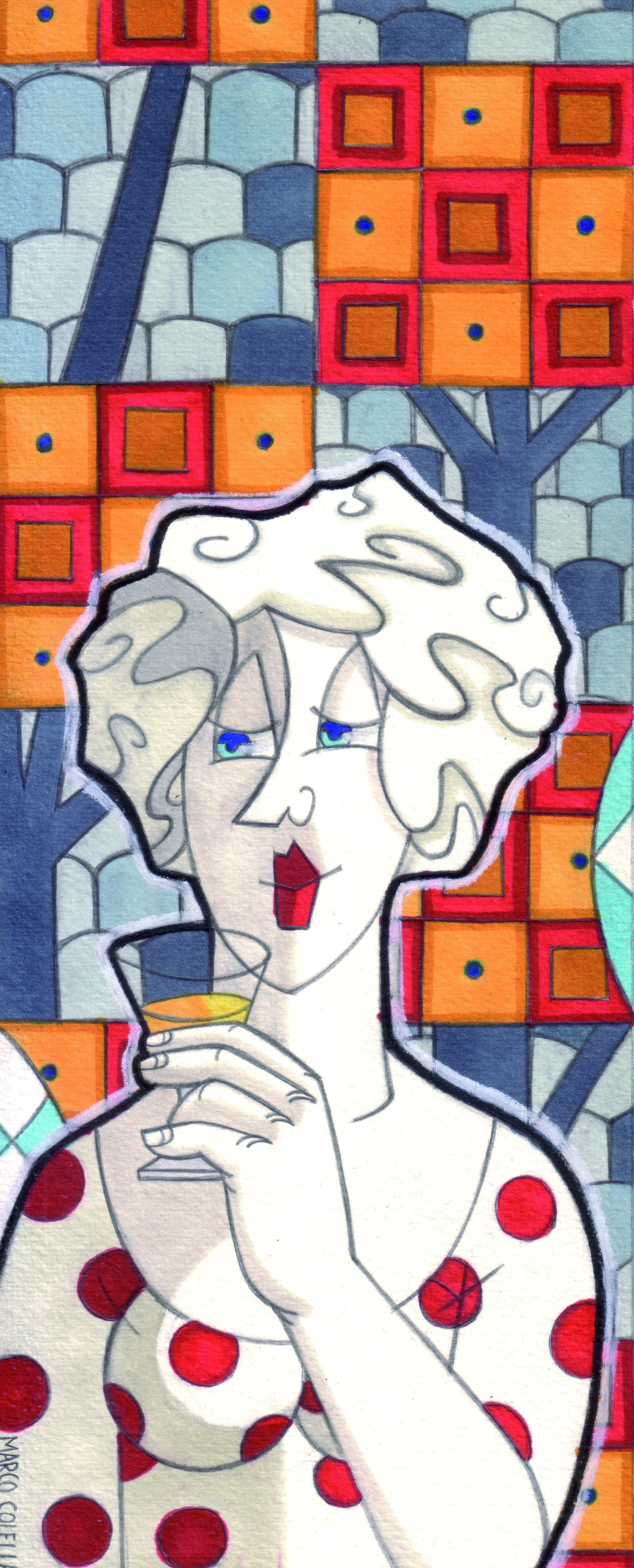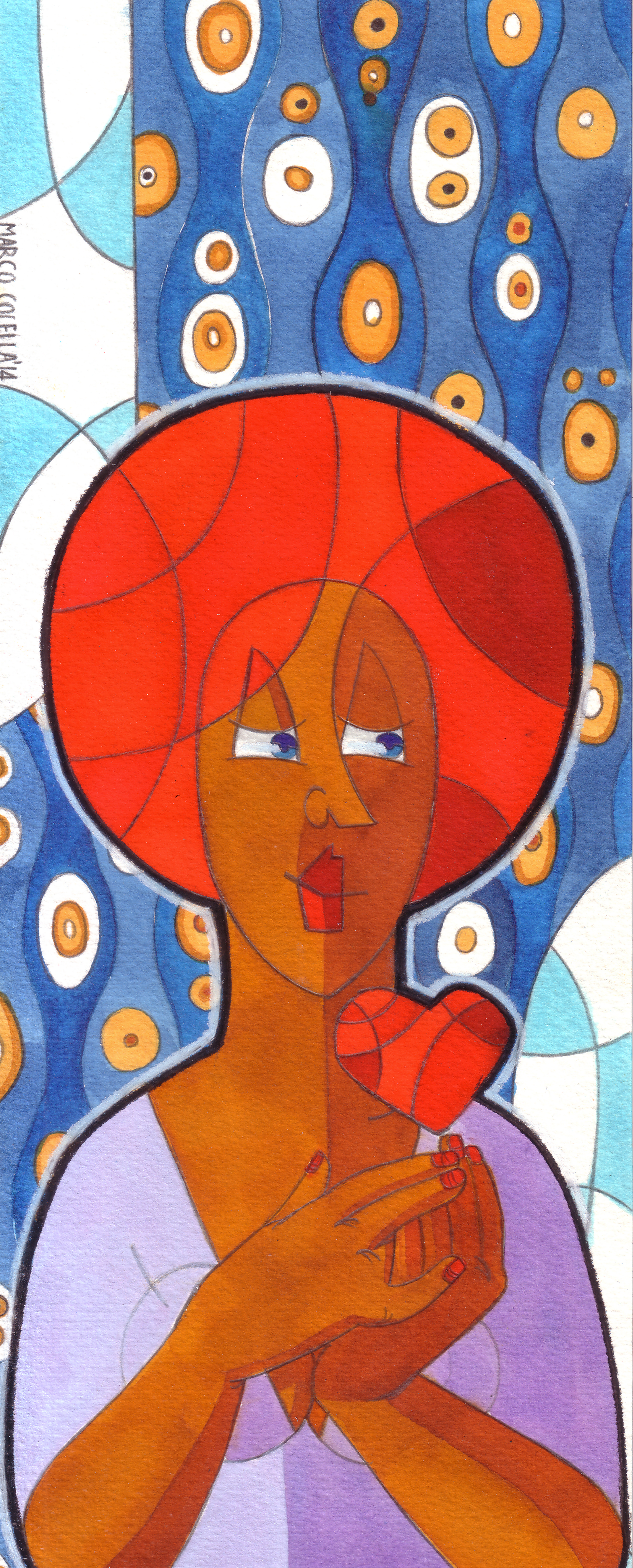 Light color line are the elements on which Marco Colella founds his pictorial symbol through which portrays – with playful spirit as critical – a humanity alive and jubilant starring the many facets of the feminine (shyness exaltation of beauty) or the male-female couple.