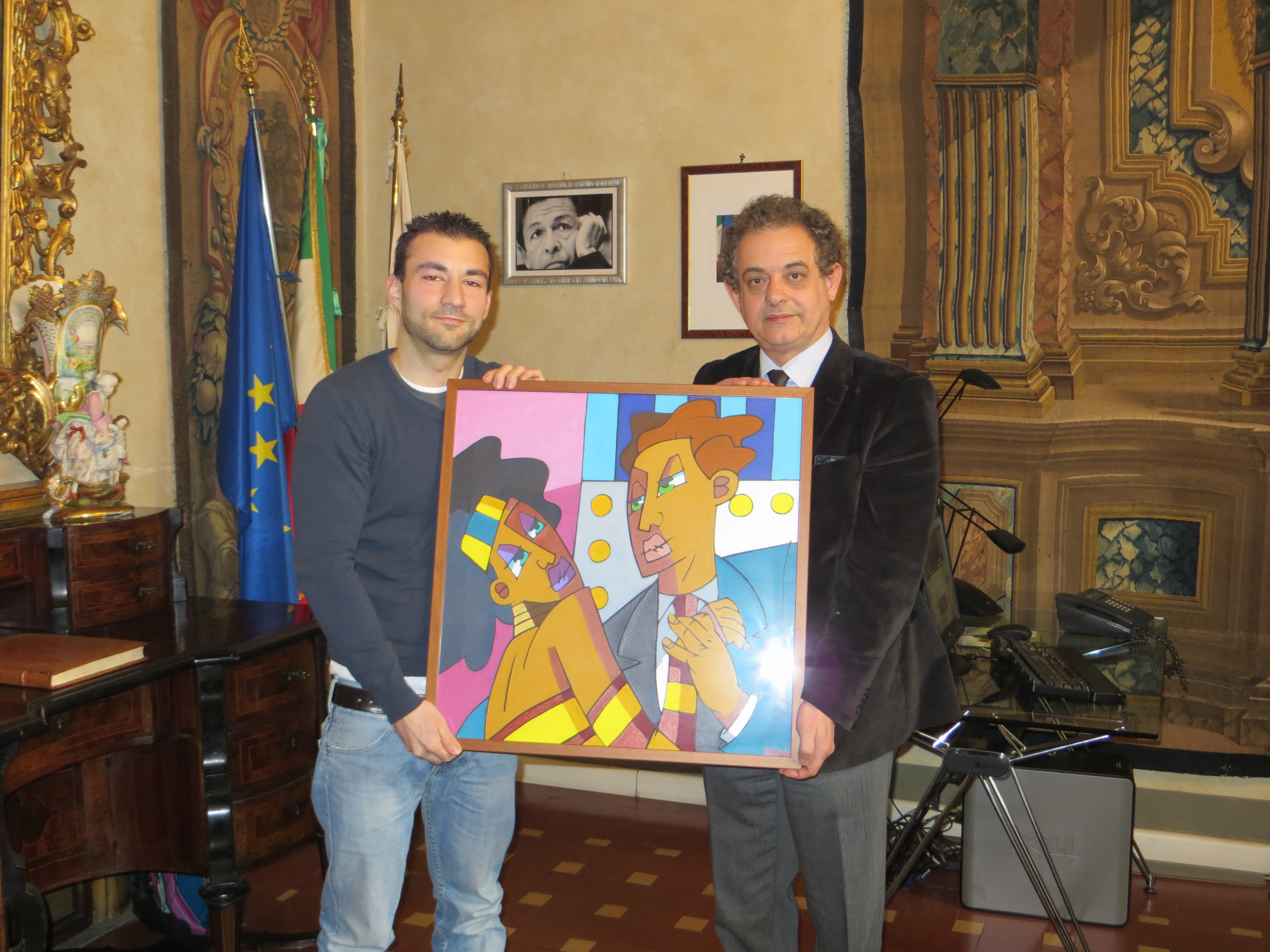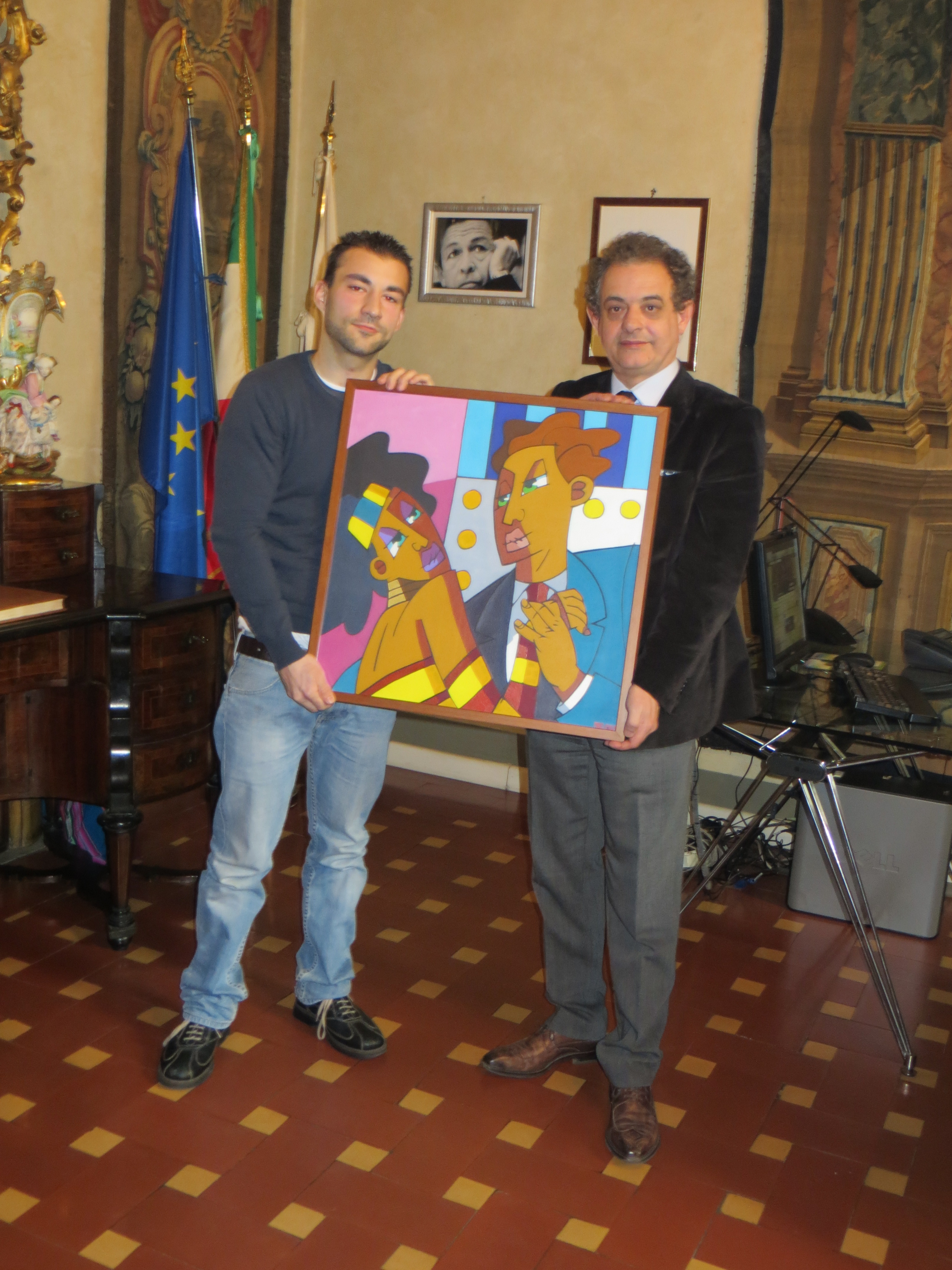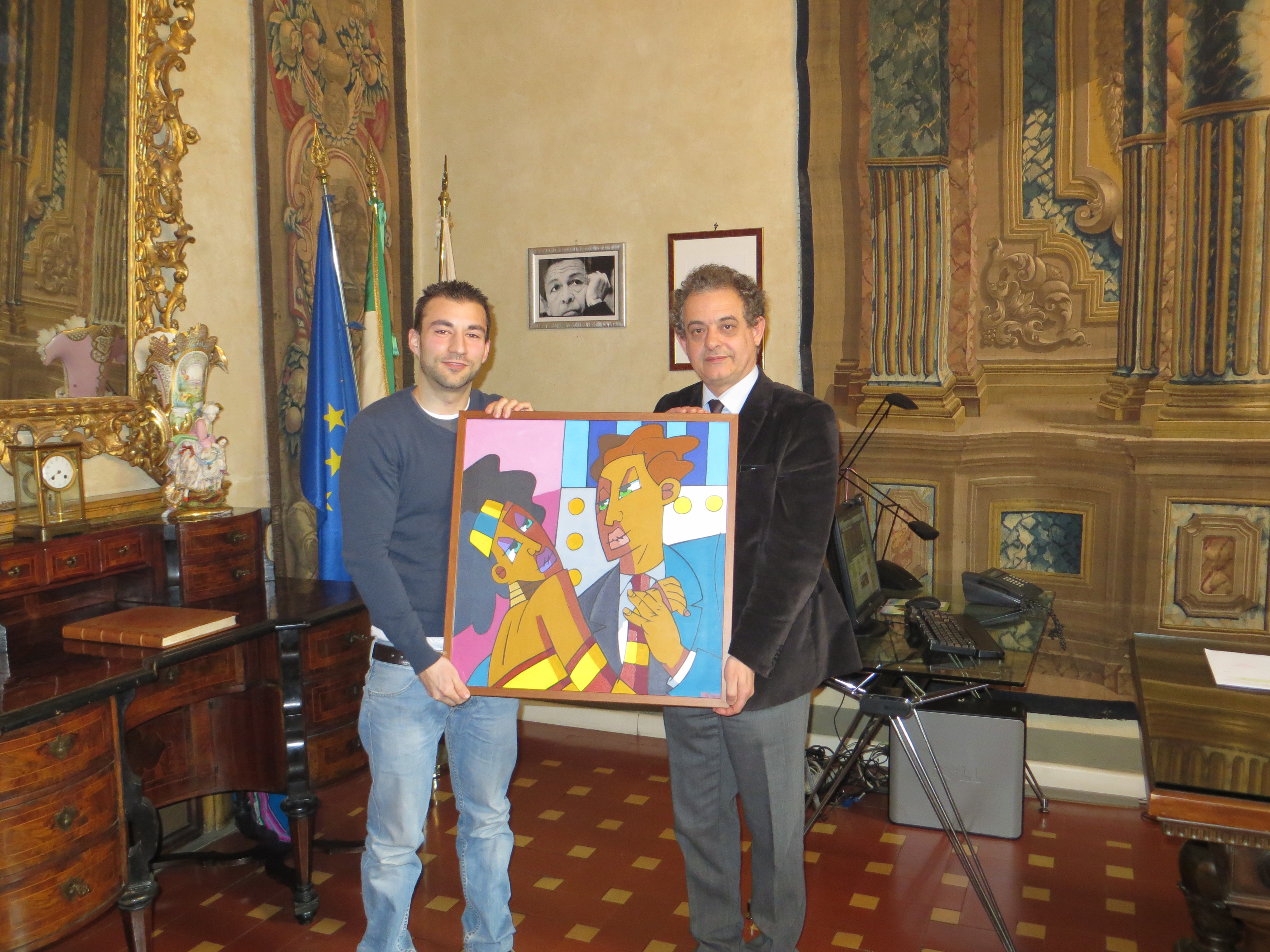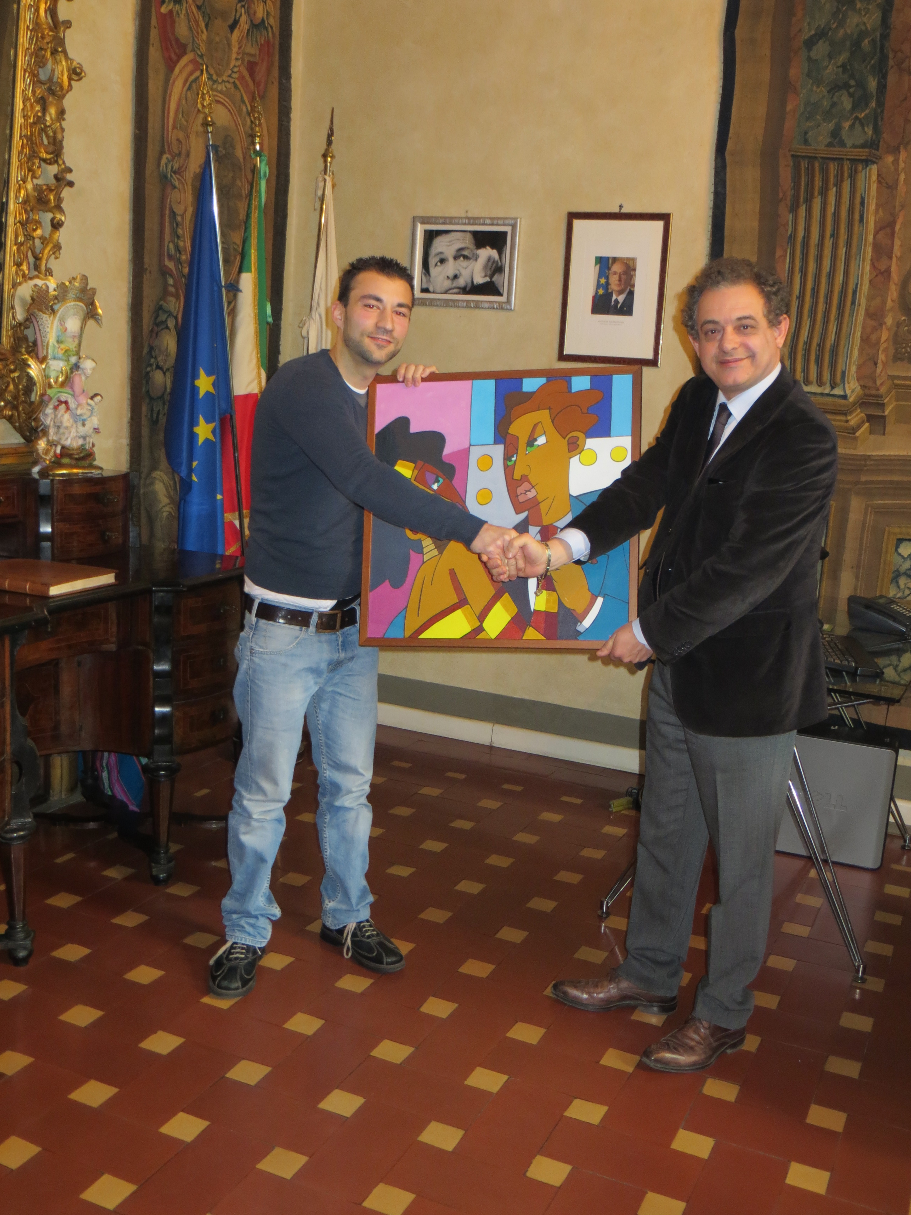 Consegna quadro a Presidente della Provincia Andrea Barducci presso Palazzo Medici RIccardi, Firenze